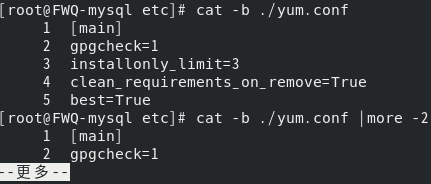 cat file1 file2>file3 #将文件file11和file2的内容覆盖输出到file3 cat file1 file2>>file3 #将文件file11和file2的内容追加输出到file36.2显示文件的前n行和后n行