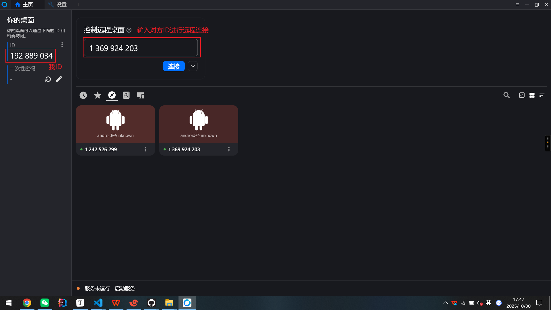配置完成后在主页输入被控端的ID就可以进行远程连接了