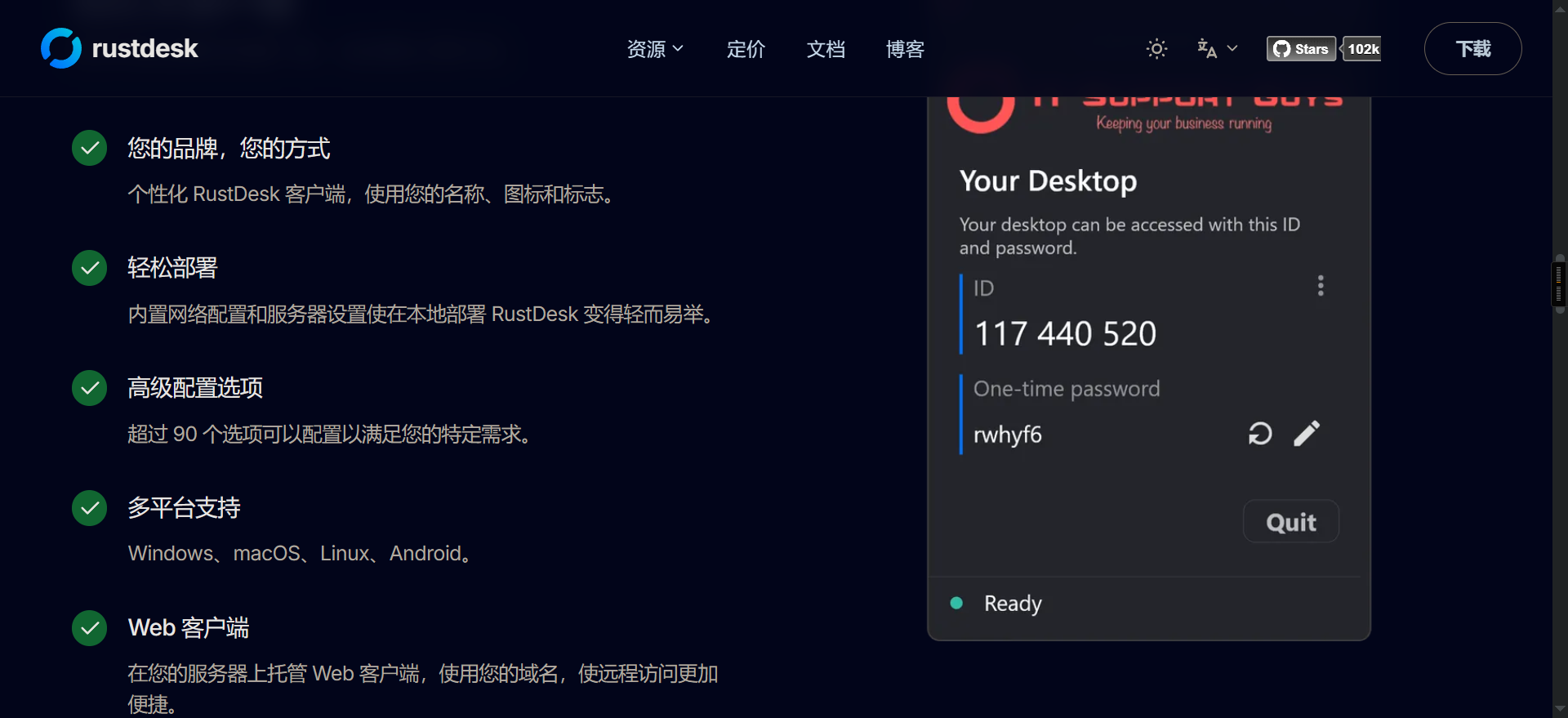 成功连接两端的客户端需要ID服务器,中继服务器,Key三者保持一致
